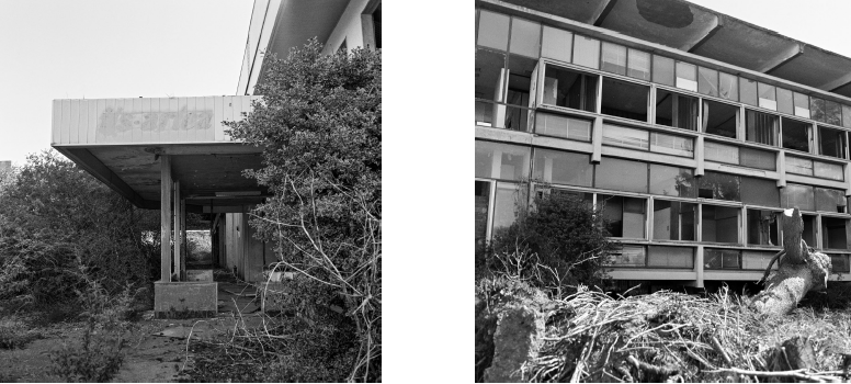 Progetto fotografico in bianco e nero che esplora paesaggi urbani e rurali abbandonati, riflettendo sulla trasformazione del territorio e sull'identità dei luoghi